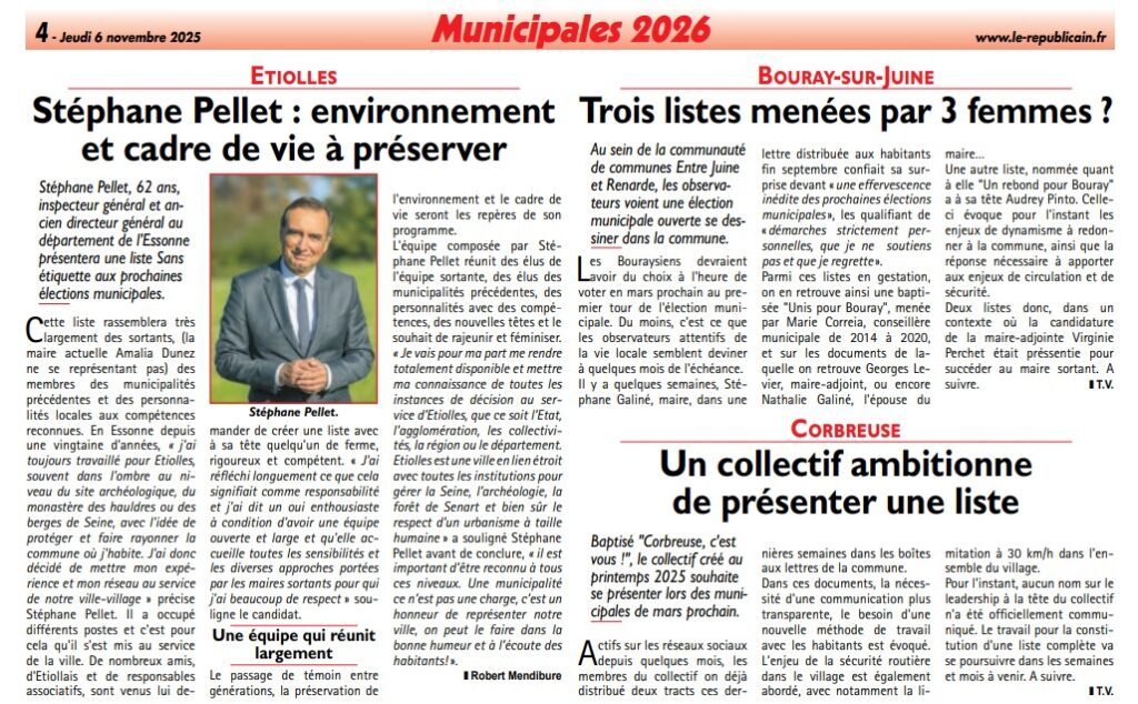 Présence au Salon des maires de France Cette semaine, l’équipe J’aime Étiolles 2026 de Stéphane Pellet était présente au Salon des maires de France avec une partie de son équipe, Isabelle Dury et Michel Seigneur. L’objectif : participer aux nombreuses rencontres, découvrir les nouvelles modalités de partenariat avec les institutions présentes, mais aussi manifester notre […]
